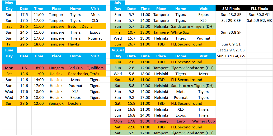 Tigers Softball is the reigning Finnish Softball Champion. Our goal is to build a strong, competitive program capable of succeeding at the international level while developing players for the Finnish National Team and supporting their ambitions to compete in the Summer Olympic Games.
